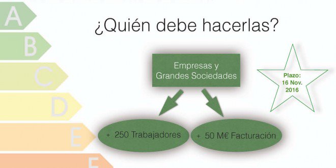 Las grandes empresas tendrán hasta el 13 de noviembre para realizar una auditoría para mejorar su consumo energético. Se establecen los requisitos mínimos para los profesionales, tanto auditores energéticos como proveedores de servicios energéticos. El Consejo de Ministros ha aprobado el sábado 13 de febrero un Real Decreto que transpone la Directiva de Eficiencia Energética 2012/27/UE en lo referente a auditorías energéticas.